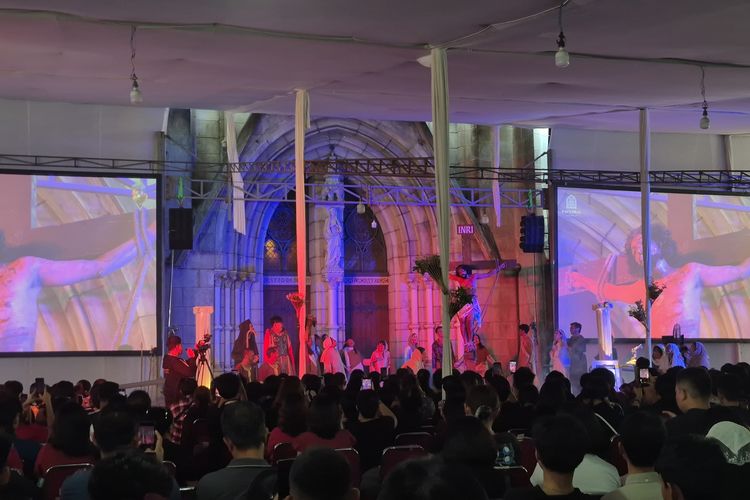 Gereja Katedral Jakarta menggelar drama musikal Jalan Salib berjudul 'Lux in Nihilo' sebelum ibadah Jumat Agung, Jumat (3/4/2026).