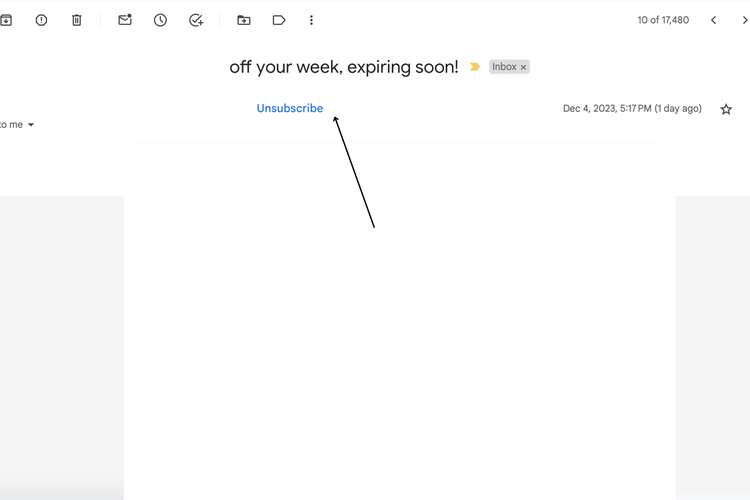 Selanjutnya pilih salah satu e-mail promosi atau newsletter yang ingih diberhentikan