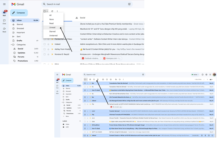 /soffyaranti Ilustrasi hapus email yang tidak terbaca di Gmail