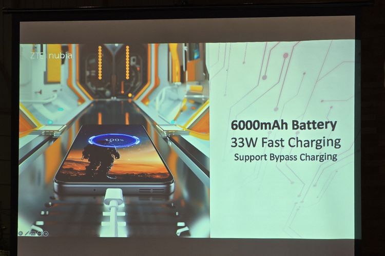 KOMPAS.com/ Galuh Putri Riyanto ZTE Nubia Neo 2 5G dibekali baterai 6.000 mAh,fast charging 33 watt,dan bypass charging.
