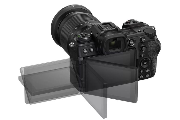 Nikon Bagian belakang Nikon Z6 III dengan touchscreen fully articulatedUntuk media penyimpanan,Nikon Z6 III menyediakan satu slot kartu memori CFExpress yang bisa digunakan untuk burst shot berkecepatan tinggi serta video N-RAW,berikut satu slot SD UHS-II.