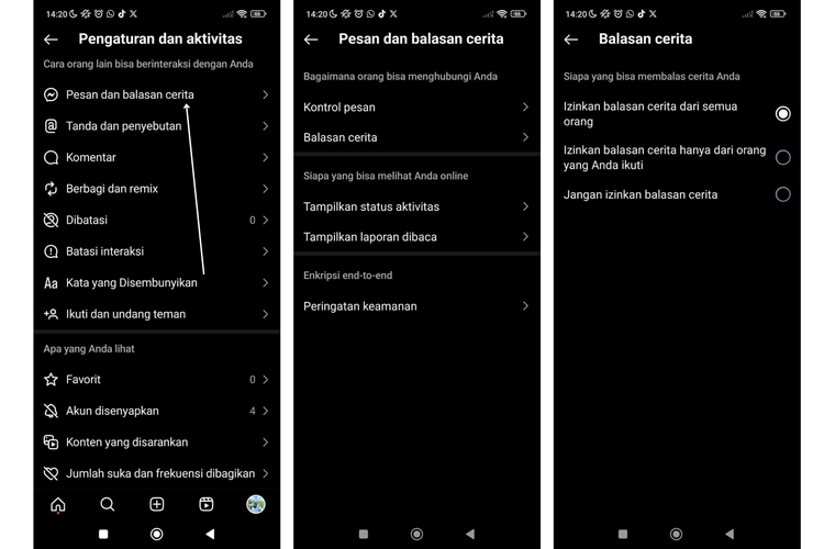 Gulir ke bawah dan pilih “Pesan dan balasan cerita”