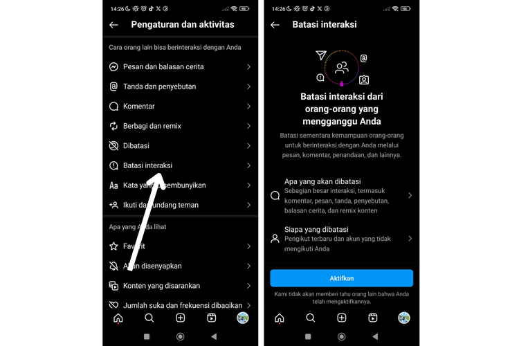 Pilih “Batasi interaksi” di menu “Cara orang lain berinteraksi dengan Anda”