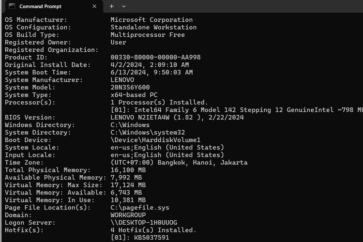 Setelah itu,ketik “systeminfo” (tanpa tanda kutip).