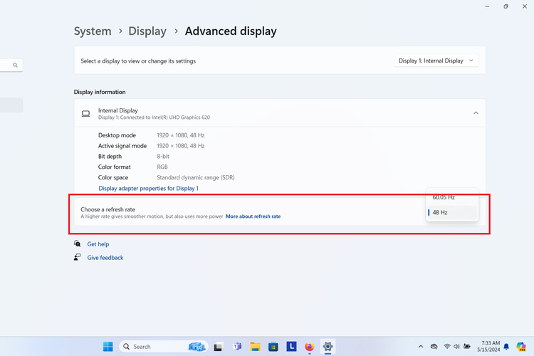 Pilih refresh rateyang tersedia untuk layar sesuai kebutuhan.