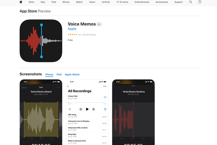 Selain itu Voice Memo memiliki fitur yang memungkinkan Anda menyimpan rekaman Anda dengan aman dan sinkron di semua perangkat Apple. Umumnya Voice Memo secara default terinstal di perangkat. Namun Anda bisa menginstalnya di Apple Store.