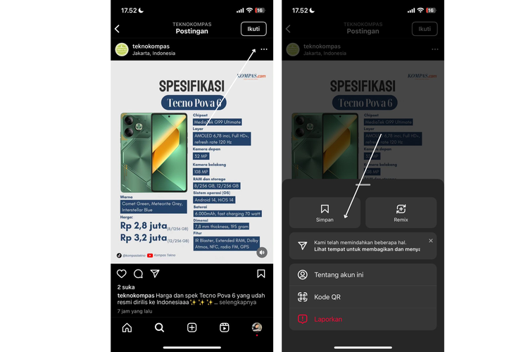Kompas.com/soffyaranti Ilustrasi cara simpan postingan di IG