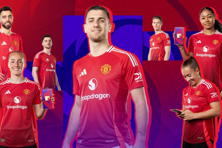 Kini,logo chipset perangkat seluler bikinan Qualcomm,Snapdragon,bakal menghiasi seragam baru Manchester United untuk tim pria dan wanita,baik untuk varian home jersey (home kit),away kit,dan third kit.