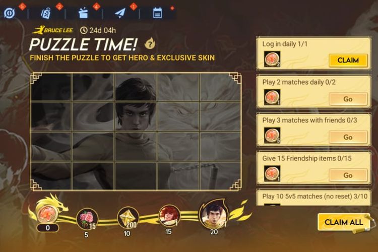 Begitu mengumpulkan potongan puzzle yang cukup,pengguna langsung bisa mengeklaim skin Bruce Lee dari halaman event Puzzle Time.