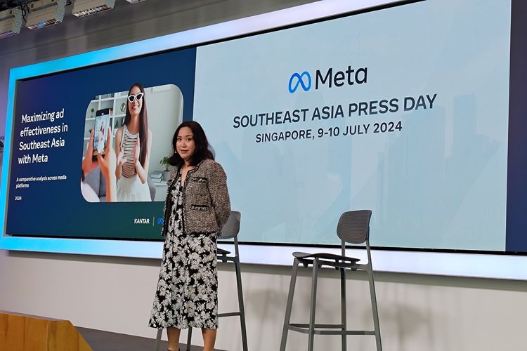 KOMPAS.com/Bill Clinten Regional Account Director at Worldpanel Kantar,Windy Anggayasti dalam acara Southeast Asia Press Day yang digelar di kantor Meta untuk Asia Tenggara di Singapura,Selasa (9/7/2024).