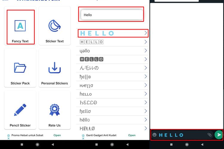 Cara membuat tulisan berwarna di WA yang pertama adalah menggunakan aplikasi tambahan dengan layanan pengubah font atau font generator seperti aplikasi Fancy Text + Sticker Maker. Adapun caranya adalah sebagai berikut: