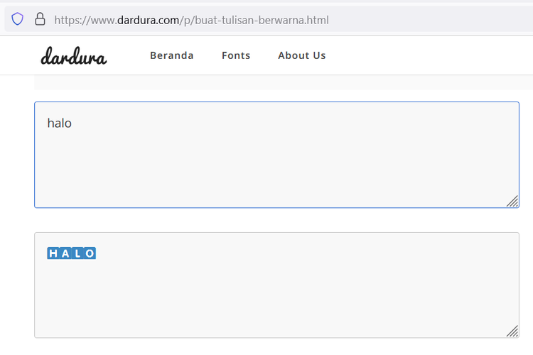 Buka website Dardura ini,https://www.dardura.com/p/buat-tulisan-berwarna.html,melalui browser di ponsel.