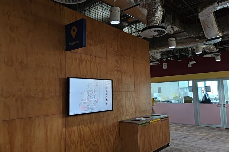Kompas.com/BILL CLINTEN Fasilitas Wayfinder yang ada di kantor Meta di Singapura.