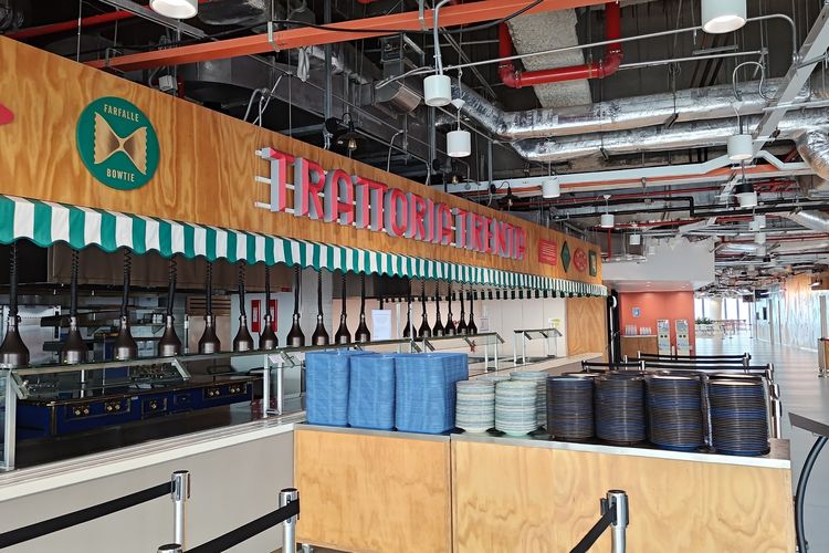 Kompas.com/BILL CLINTEN Booth atau stan makanan di kantin di kantor Meta di Singapura.
