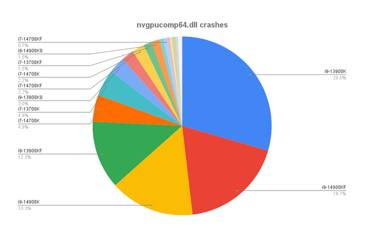 Di forum Warframe,seorang developer membagikan data statistik crash yang diagregasi dari ratusan pemain. Poin menariknya adalah nyaris semua crash dialami oleh sistem berprosesor Intel Core Generasi ke-13 dan 14,terutama Core i9-13900K dan Core i9-14900K.
