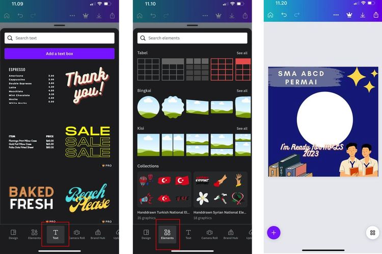 Untuk menambahkan teks,pilih menu “Teks” yang berada di sebelah kanan menu “Elemen”.