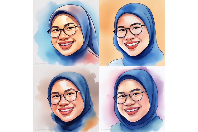 Hasil avatar AI dengan opsi watercolor justru sangat mirip dengan referensi foto yang kami gunakan. Nilai plusnya,meski terkesan mirip,empat avatar AI yang dihasilkan Galaxy AI ini unik dengan menampilkan desain warna yang berbeda,baik di aspek wajah maupun latar belakang.