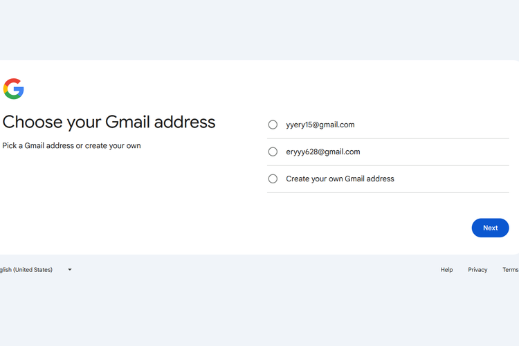 Setelah itu,pengguna diminta untuk membuat alamat Gmail dengan nama identitas yang sesuai keinginan.