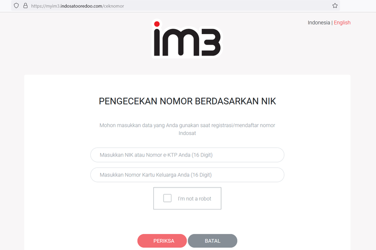 Buka website Indosat ini,https://myim3.indosatooredoo.com/ceknomor.