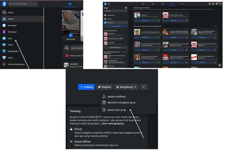 Kompas.com/soffyaranti Ilustrasi cara keluar grup Facebook