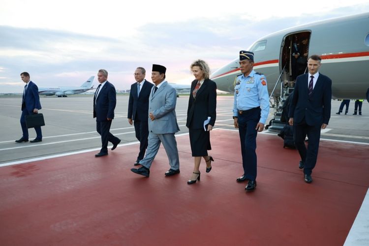 Prabowo beserta delegasi tiba di Bandara Vnukovo,Moskowa,Selasa (30/7/2024),pukul 20.30 waktu setempat.
