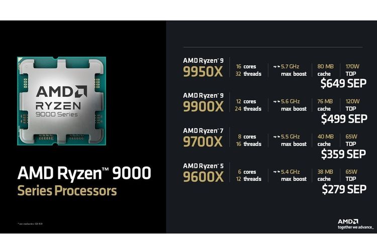 AMD Daftar spesifikasi dan harga dari empat model perdana lini prosesor AMD Ryzen 9000 Series