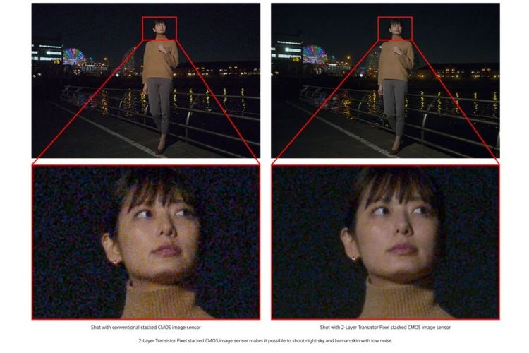 Sony Teknologi 2-Layer Transistor Pixel juga disebut mampu meminimalisasi tingkat noise saat pemotretan di kondisi low light (kanan)