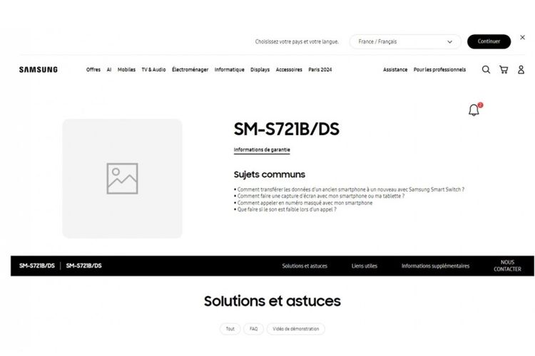 GSM Arena Halaman dukungan SM-S721B di situs Samsung Perancis,diduga Galaxy S24 FE