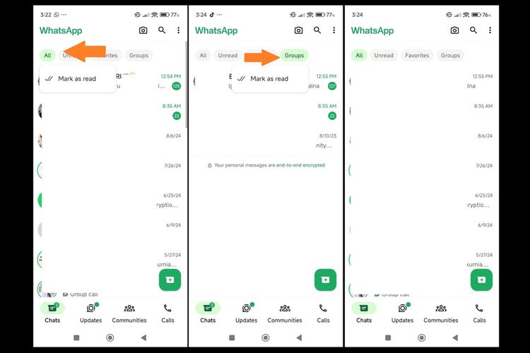 Selain itu,cara ini juga akan menghapus ikon hijau pada chat yang belum terbaca. Namun pastikan aplikasi WhatsApp Anda sudah di-update dengan tampilan terbaru,setidaknya ke versi 2.24.5.76 untuk WhatsApp Android,bila ingin mencoba cara cepat berikut ini.
