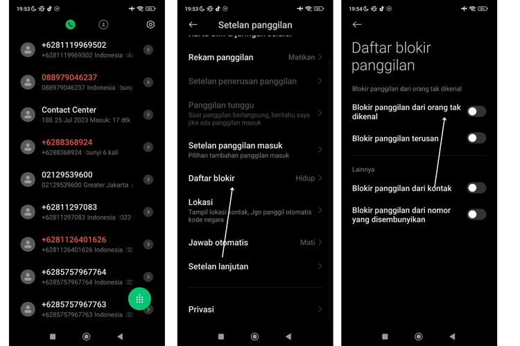 Selanjutnya geser toggle ke kanan bagian “Blokir panggilan orang tak dikenal” dan “Blokir panggulan dari nomor yang disembunyikan”