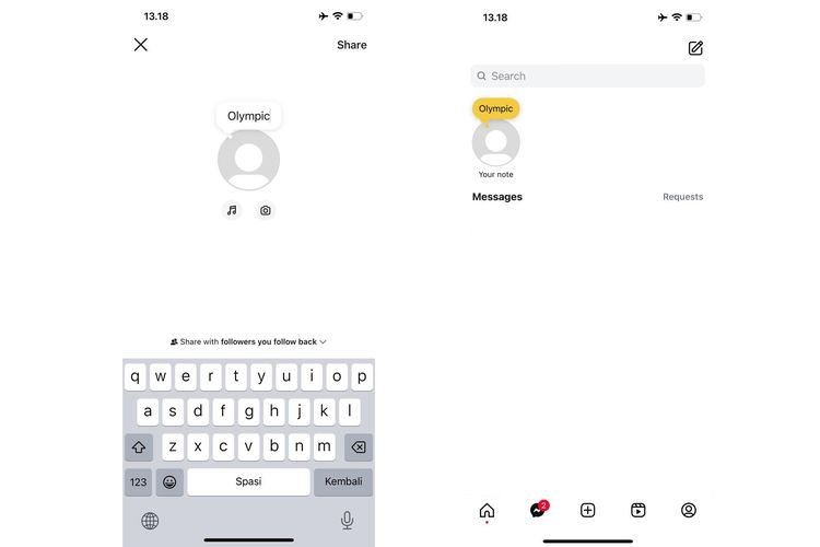KOMPAS.com/Zulfikar Hardiansyah Tampilan note Instagram yang normal.