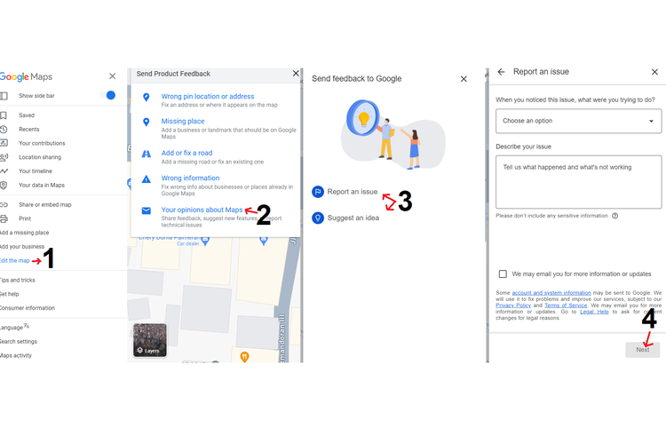 KOMPAS.com/Mikhaangelo Fabialdi Nurhapy Cara melaporkan masalah atau memberikan saran di Google Maps versi web