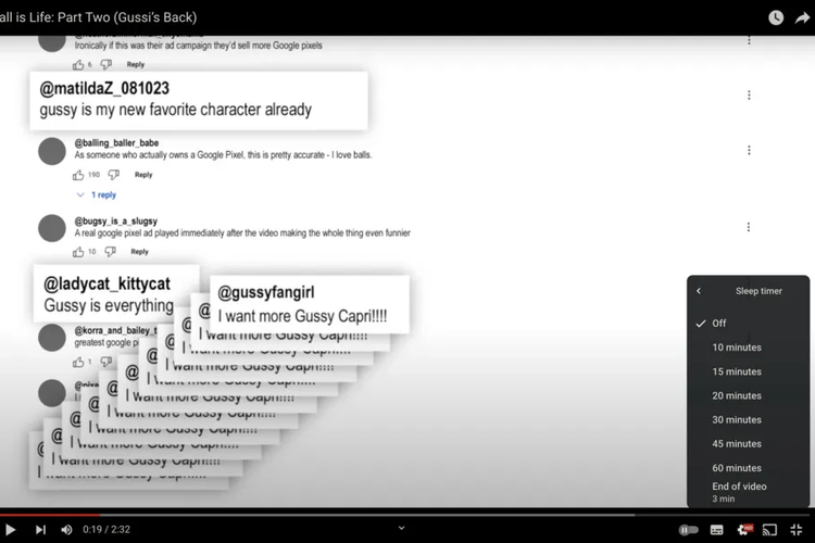 Setelah diaktifkan,pengguna bisa membuka video YouTube dan mengeklik tombol "Settings" berbentuk gir. Pengguna bakal menemukan tombol "Sleep timer" dengan ikon bulan dan huruf "Z",yakni representasi onomatope dari suara mendengkur.