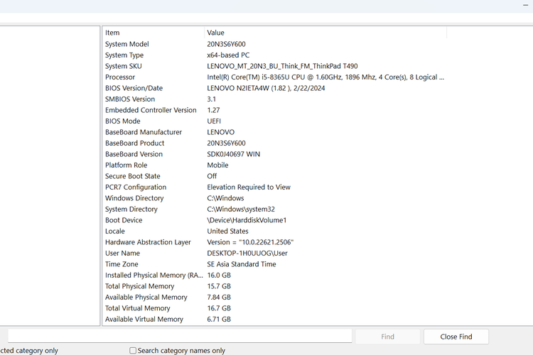 KOMPAS.com/Zulfikar Hardiansyah Ilustrasi cara cek prosesor laptop Windows via System Information.