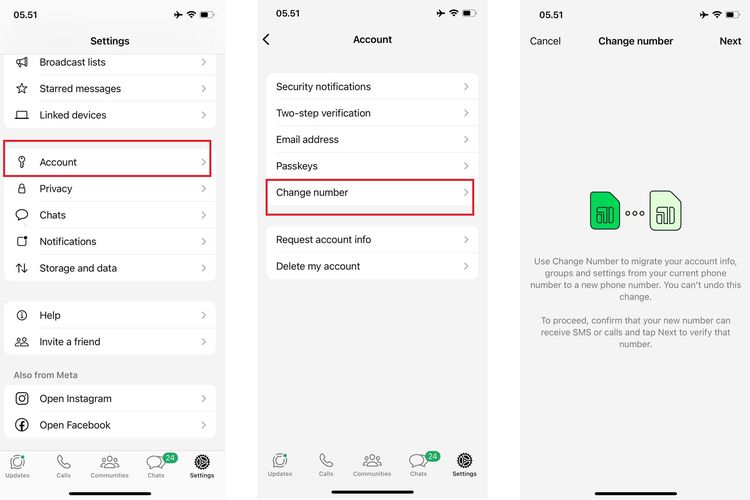 Langkah pertama adalah pengguna perlu mengganti nomor WhatsApp yang sudah tidak aktif. Setelah diganti dengan yang baru,pengguna bisa mulai memindahkan WhatsApp ke HP baru tanpa verifikasi di nomor lama yang sudah tidak aktif.
