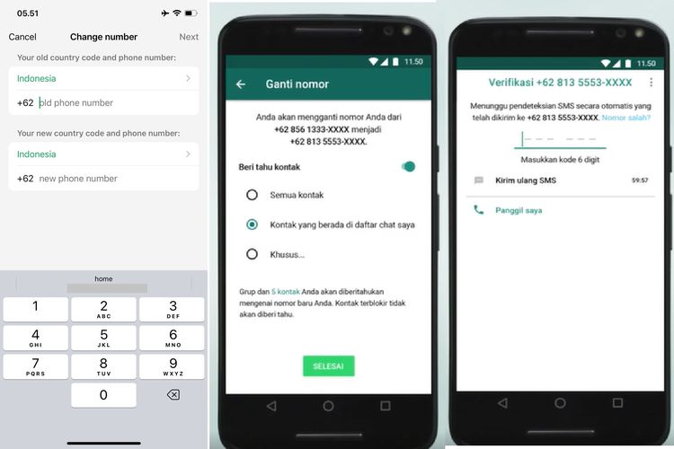 Pergantian nomor WhatsApp harus dilakukan di HP lama.
