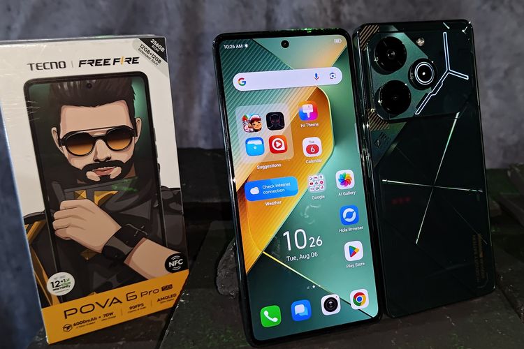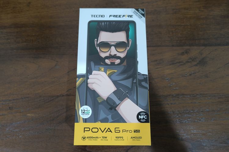 Bedanya,bagian atas boks penjualan Tecno Pova 6 Pro 5G dihias dengan karakter Alok dari game battle royale bikinan Garena,Free Fire. Sementara itu,kotak penjualan model reguler menghadirkan karakter Kelly.