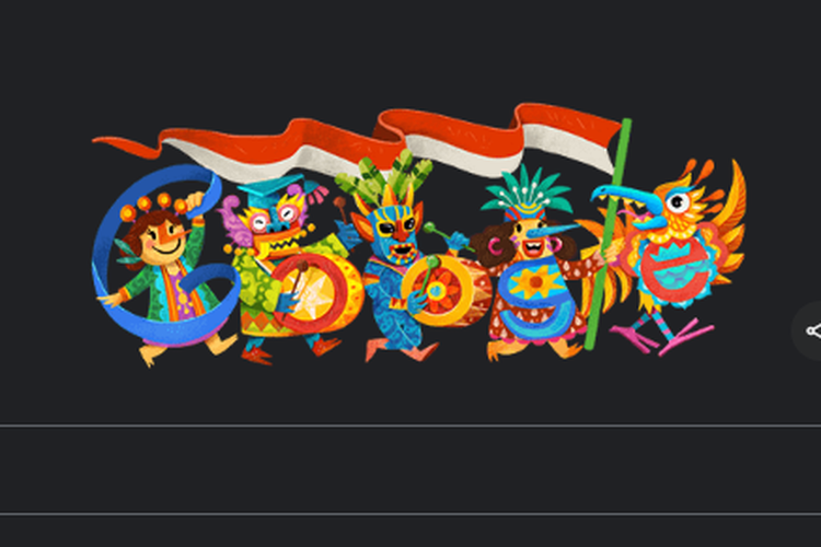 Google Doodle hari ini menampilkan karakter burung garuda memimpin sebuah pawai diikuti orang-orang yang mengenakan topeng dan pakaian tradisional. Salah satu karakter tampak membawa bendera merah putih.