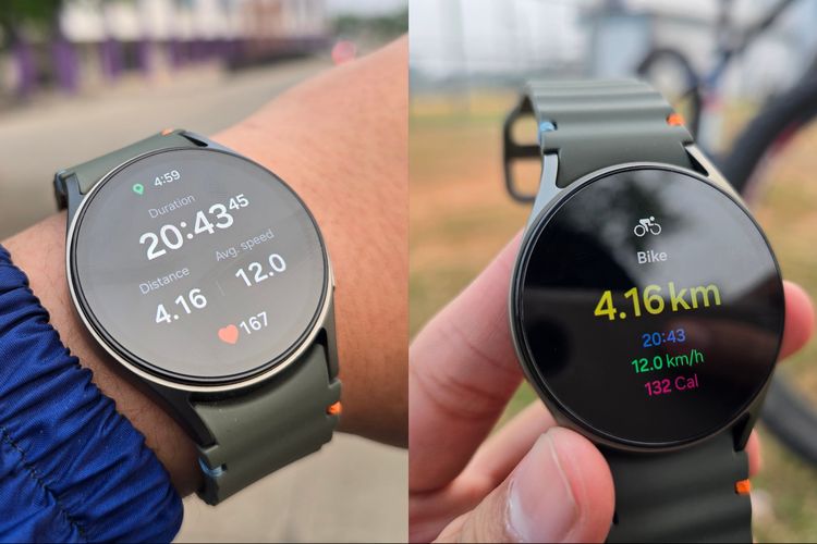 KOMPAS.com/ Galuh Putri Riyanto Samsung Galaxy Watch 7 bisa lacak lebih dari 100 jenis olahraga. Dengan melacak workout,pengguna bisa mengetahui informasi seputar durasi olahraga,jarak tempuh,kecepatan,detak jantung,kalori yang terbakar,hingga rute olahraga.