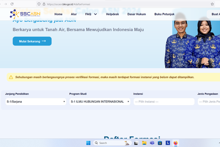 Di halaman Awal atau Home,bakal tersedia kolom untuk mencari formasi yang hendak dilamar peserta.