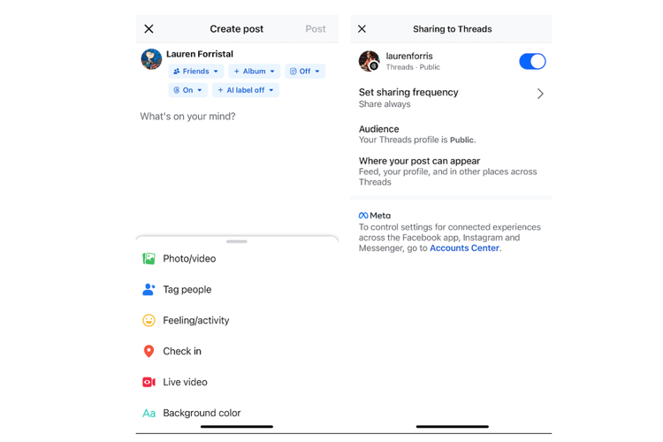 Dengan fitur ini,pengguna bisa membagikan postingan Facebook dan Instagram ke Threads,dan sebaliknya,secara langsung hanya dengan satu klik.