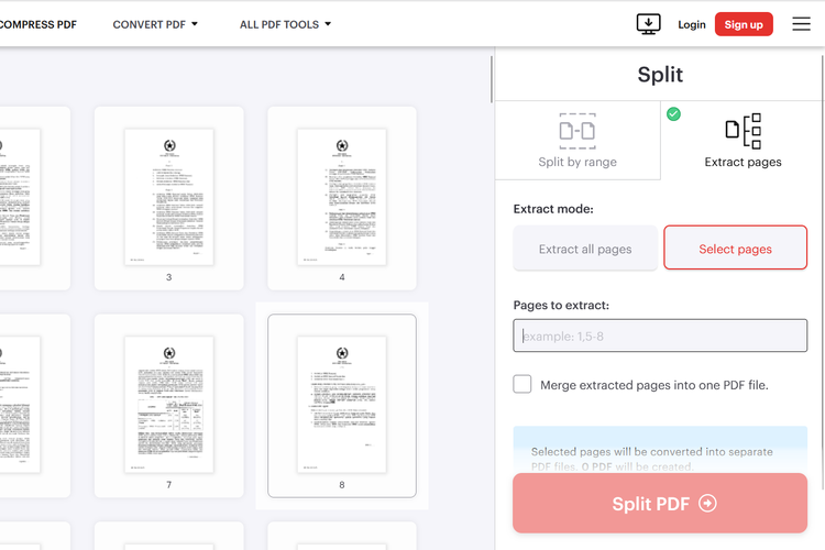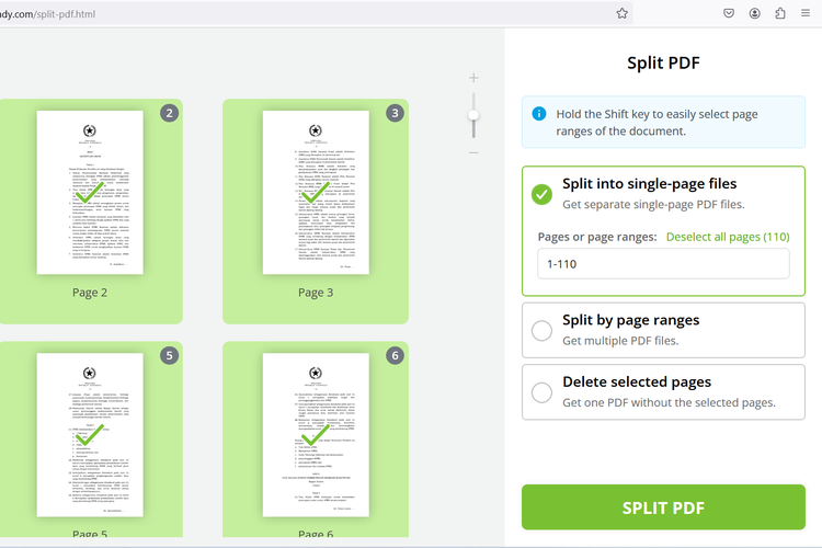 Di website ini,pengguna bisa memisahkan PDF berdasar range halaman dan satuan halaman yang bisa dipilih.