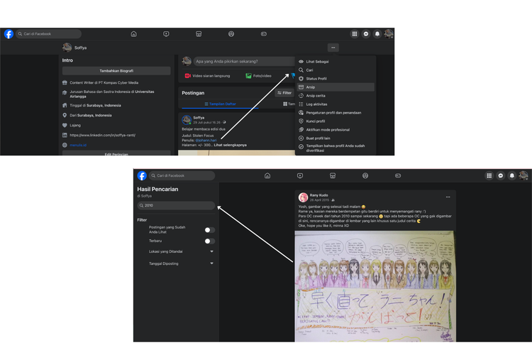 Kompas.com/soffyaranti Ilustrasi cara mencari postingan foto lama di FB