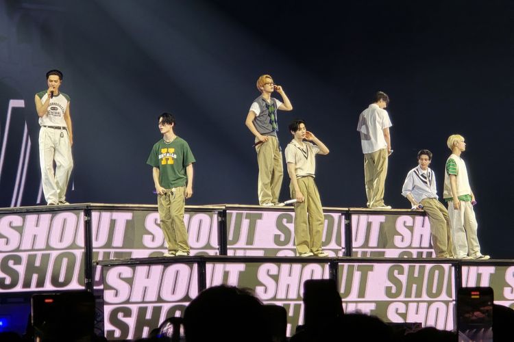 KOMPAS.com/Caroline Saskia Tanoto EnHypen yang sedang membawakan lagu berjudul Shout Out