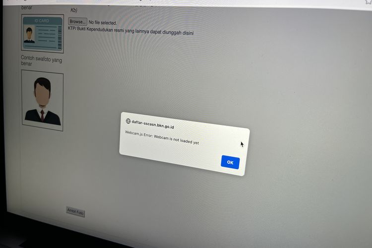 KOMPAS.com/Zulfikar Hardiansyah Ilustrasi cara mengatasi webcam.js error webcam is not loaded yet pada Chrome di SSCASN saat swafoto daftar CPNS 2024.