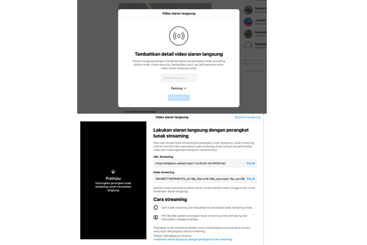 URL dan kunci streaming inilah yang memungkinkan Anda untuk menyiarkan pengaturan aplikasi streaming Anda langsung ke Instagram Live.