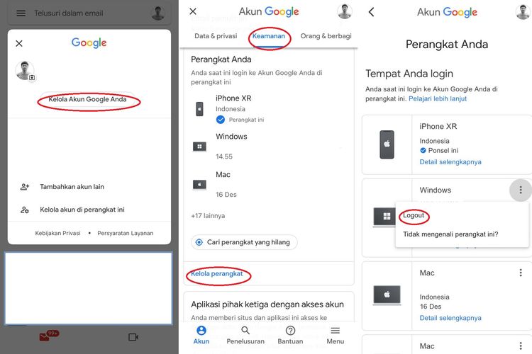 Berikutnya bakal muncul daftar perangkat yang dipakai untuk login akun Gmail.