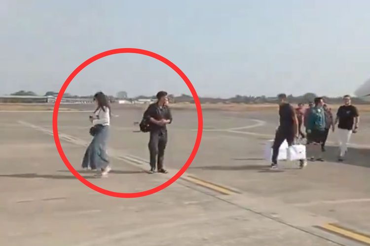 X/@BosPurwa Tangkapan layar sosok yang diduga Kaesang dan Erina turun dari jet pribadi,namun barang bawaannya tidak diperiksa.