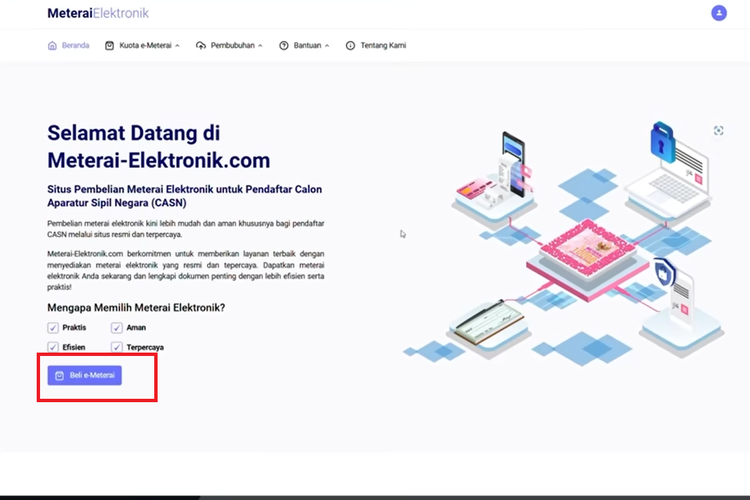 Peruri Ilustrasi cara beli e-meterai buat daftar CPNS 2024 di meterai-elektronik.com.