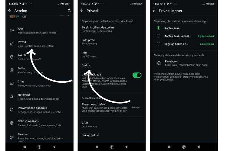 Namun,tidak semua momen perlu dilihat oleh semua orang,terutama jika ada kontak tertentu yang Anda ingin hindari. Kendati demikian WhatsApp menyediakan fitur privasi yang memungkinkan Anda mengatur siapa saja yang dapat melihat Status Anda.